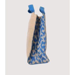 This Estee Lauder mini tote comes with double handles and a matching small zippered bag. It showcases a stunning blue and beige animal print on a woven pattern and is fully lined.