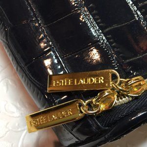 Estee Lauder Navy Blue Faux Crocodile Leather Cosmetic Zip Train Travel Case Bag