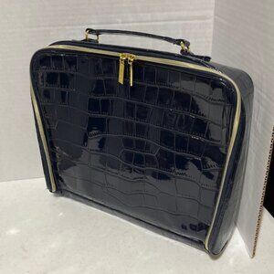Estee Lauder Rich Navy Blue Faux Crocodile Leather Cosmetic Train Travel Case Bag