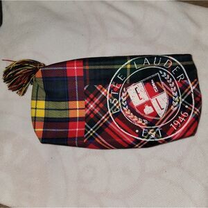Estee Lauder Plaid Tartan Cosmetic Zipper Make Up Bag with Tassle & Big Logo