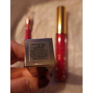 New. Set of 3. Lip set includes lip stick, lip liner & lip gloss. Lip stick name is immortal & lip gloss is named tender trap. Liner is red. Lipstick has snowflakes carved on the outside of it.