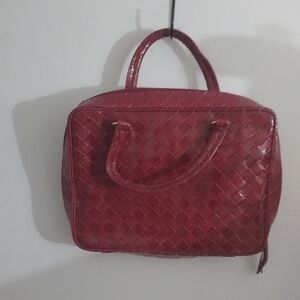 Chic cranberry red quilted design. Perfect for organizing cosmetics. Stylish and functional... zippered cosmetics or overnight small bag comes with wallet inside