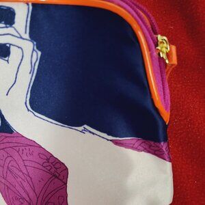 Estee Lauder Vintage Blue Bright Orange Lilac Poly Trimmed in Polyurethane Makeup Bag...Beautiful Makeup Bag...Could Almost Be Used a Clutch....Is Vintage But Looks to be Never Used....Like Brand New.....