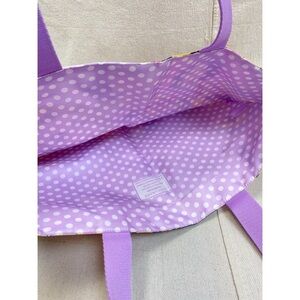 NWOT Estée Lauder tote- comic design with purple and white polka dot interior