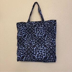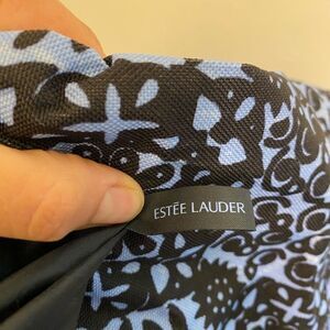 Estee Lauder navy blue light blue patterned Lined canvas tote Bag 17x14.5x5