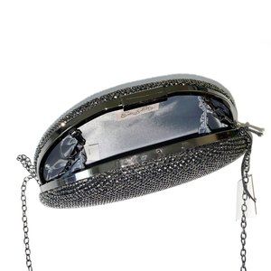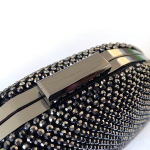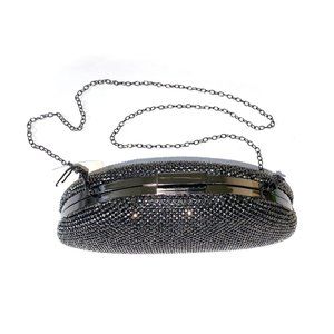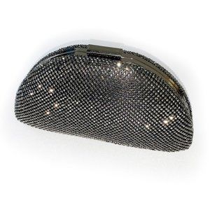 Estee & Lilly Sparkling Black & Silver Metal Half-Moon Clutch (Opt. Crossbody)