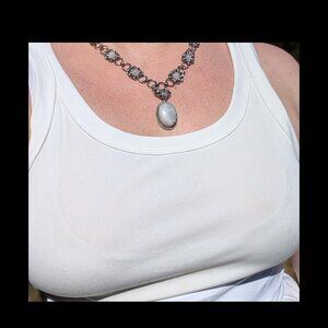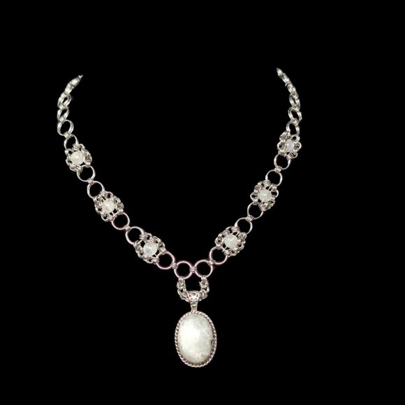 A handcrafted chain necklace featuring an exquisite moonstone pendant.