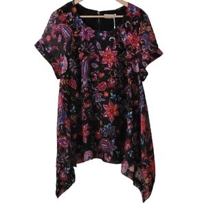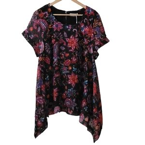 Estelle Clements Print Top Plus Floral Print Shark Bite Hem Short Sleeve 14W