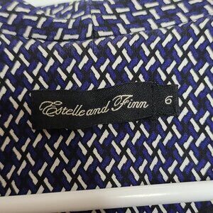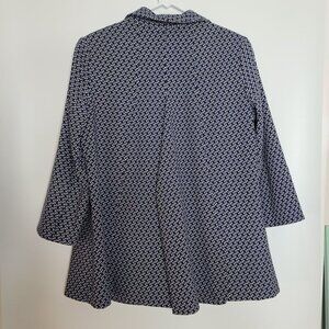 Estelle & Finn Shaped Diamond Print Blue White Open Front Blazer Size 6