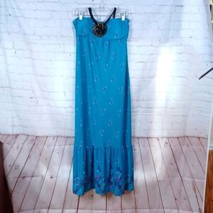 Ester Women's Maxi Blue Floral Sun Dress L Strapless L