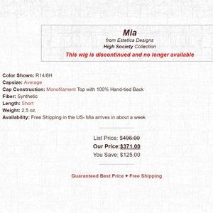 Last Picture is not the color this wig is- it is shown for pricing etc