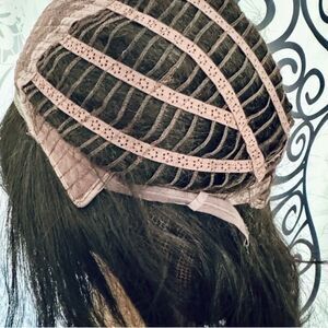 Pretty dark chocolate brown lace front wig. Butterfly style cut. Side part. Wide parting space. Wefted cap with adjustable straps. I purchased this from another reseller on another platform. It came in this box with the name Rebecca. Honestly I’m not sure if that’s the true name because when I look it up Rebecca looks completely different. Shes in like new condition. I never wore her only tried on. The color is a little too dark for me. I don’t know if she’s heat friendly or not. If you have any questions, please feel free to ask. Box has some damage. See photos. Estetica Size Average