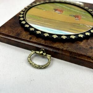 Has a Hanger on top. The Picture is raised with gold (color) maple leaves all around it. Been in the box. from Souvenirs & Coats of Arms Mississauga, Ontario Made in Canada.