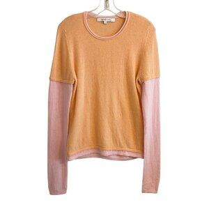 Esther Chen 100% Cashmere Sweater Large Peach Pink Colorblock Crew Neck CozyCore