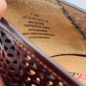 JustFab Esther laser cut / perforated brown pointy toe heels