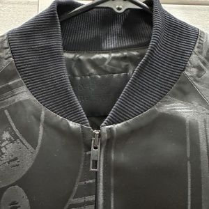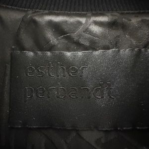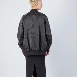 From the winner of Making the Cut, Esther Perbrandt's womens bomber jacket in a size Small. This has been tried on and never worn and is from Germany. It fits over-sized (for reference I'm a size 6). It looks and feels like satin with an industrial black design to add intrigue to a staple piece. Has 2 pockets and is fully lined. Coming from a smoke free home.