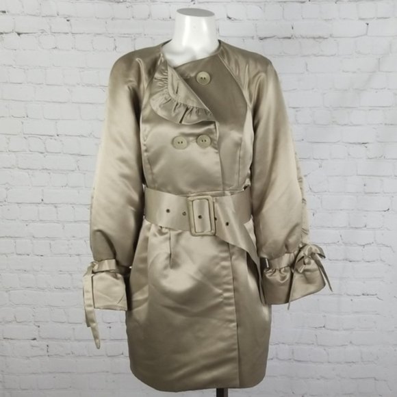 Esther's Archive dress coat. With an 8" belt this coat has a silky / satin feel.. Also (1) button missing on the inside of the coat.