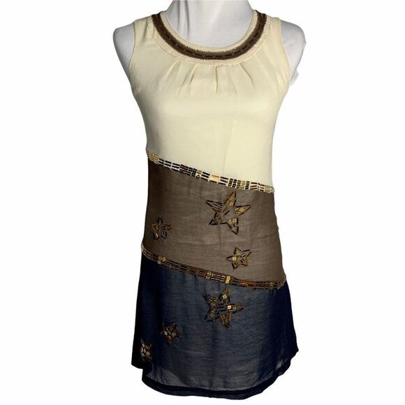 Esthers Archive Silk Sequined Shift Dress M Cream Stars Sleeveless Lined Zipper