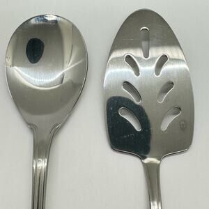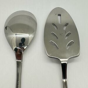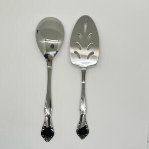 Estia Stainless Serving Set Large Spoon Pierced Spatula Pie Server Floral Motif