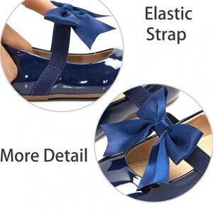 Estine Royal Blue Mary Jane Bow Slip On Flats Dress Shoes Girl’s Size 13