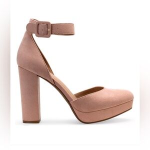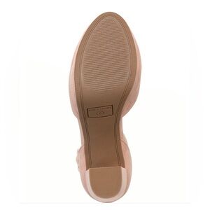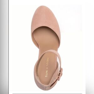 Sun + Stone lofts your favorite dressy looks through the roof on the retro-inspired platform heel and sturdy ankle-strap design of the Estrella pumps 4" block heel; 1" platform