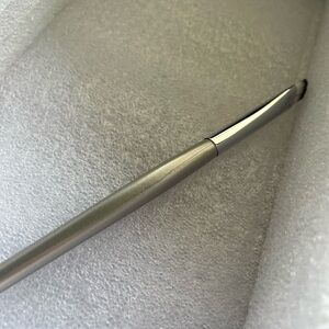 Set of six Esum makeup brushes in sleek silver. Perfect for professional application.