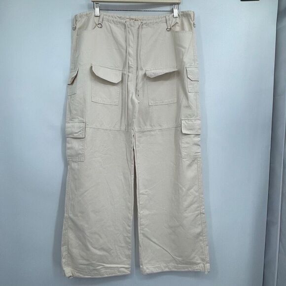 Et Clet Cream Straight Wide Leg High Waist Cotton Multi Pocket Cargo Pant Medium