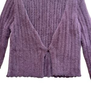 Et Clet Fuzzy Brown Sweater One Button Brown Cardigan Women’s Size Medium