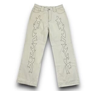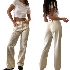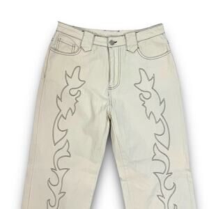 Et Clet Lightweight Denim Embroidered Jeans Wide Leg Western Cream Brown Medium