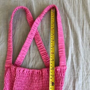 Et Clet Pink Smocked Bust Criss Cross Open Back Mini Dress In Size S Linen Blend