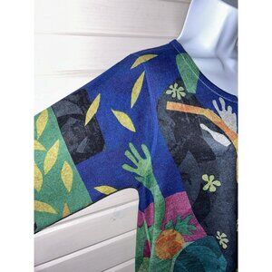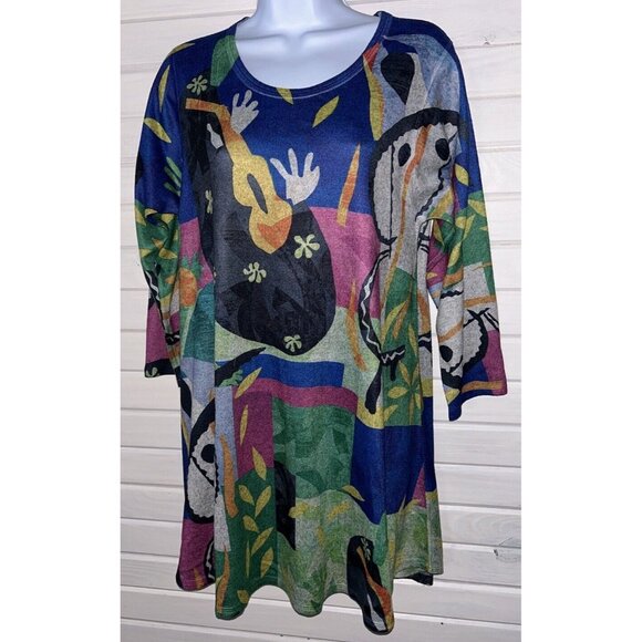 Et Lois Sz SMALL Abstract Print Soft Knit Pullover Tunic Top Pink Blue Green EUC