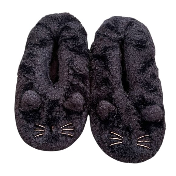 Etam Cat Slippers Kitten Whiskers Fuzzy Cozy Warm Black Women's Size 6.5-7.5 US