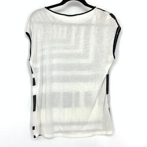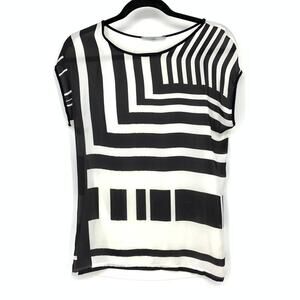 Etam Short Sleeve Blouse Womens Size Small Black White Graphic Design Print