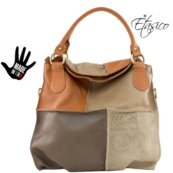 Etasico Leather Handbag Patchwork Snakeskin Bag