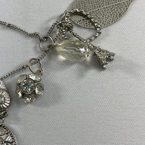 Etc! Necklace Silver Tone Dangle Charms Owl Leaf Heart Eiffel Tower Rhinestones
