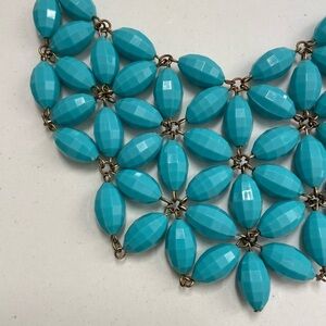 Pretty plastic turquoise beads in a flower-burst pattern. From Etc! Chain has some wear, pictured, otherwise a pretty, bright piece. All items from a dog friendly, smoke free home and ship next biz day.