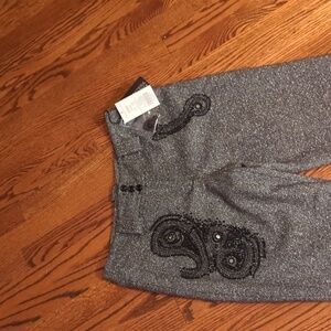 Etcerera Dark wool blend textured tweed Paisley embellished trousers NWT sz 10