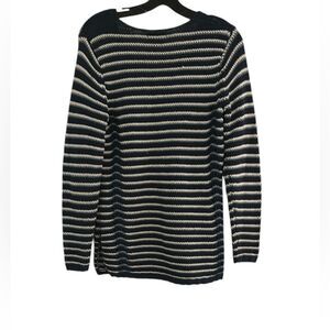 Etcetera 100% Cotton V-Neck Blue White Striped Sweater Size Small