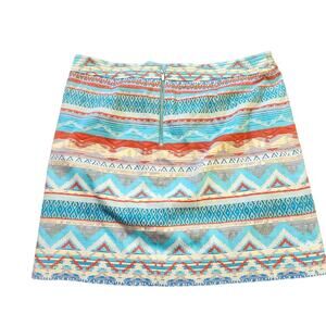 Etcetera Anthropologie Mini Skirt Aztec Geometric Blue Striped Back Zip Size 6