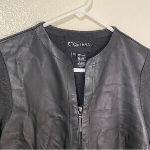 Etcetera Black Cashmere W/ Leather Zipper Front Sweater Size XS