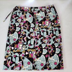 Etcetera Blue Abstract Art Print Corduroy Skirt womens 0 Knee Length