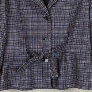 Etcetera NEW Brown/White Plaid 2pc Suit with 3 Button Front Closure and Waist Tie Belt Jacket with Shoulder Pads; Matching Pencil Skirt with Back Zip Closure and 2 Bottom Pleat Slits; Size 12: When lying flat, jacket measures 21" pit to pit and 25.5" in length from back top collar to bottom hem and skirt measures 16" waist and 23" in length; Fabric and Care instructions shown in pictures.