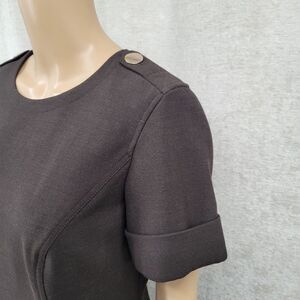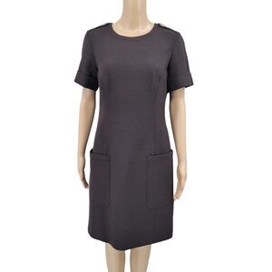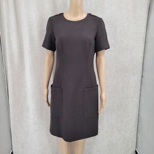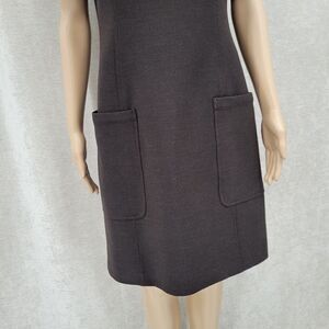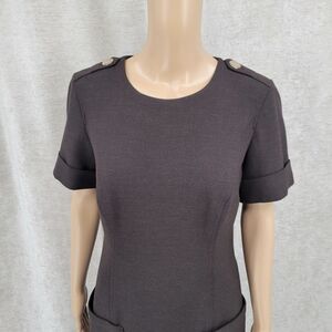 Etcetera Chocolate Brown Midi Dress Princess Seams Pockets Shoulder Epaulets