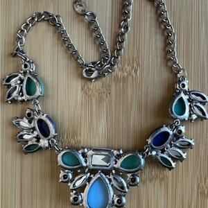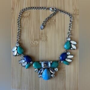Etcetera Green Blue Vintage Style Rhinestone Chunky Statement Necklace