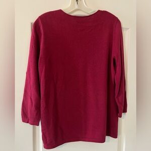 EUC excellent condition & quality. Measurements in photos. Chic cranberry thin sweater by Etcetera. Features a stylish cut-out detail. Perfect for versatile styling. Cotton, modal & polyester blend. Long sleeve. Women’s size Large. Smoke free home