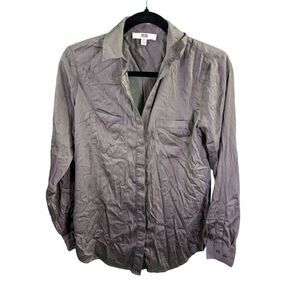 Etcetera Long Sleeve Button Up Gray Blouse Women's 0