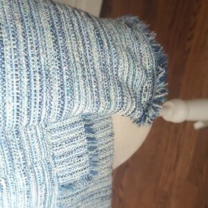 Etcetera Lux Blue Tweed Fringed Cropped Shorter 3/4 Jacket Blazer Sz 6