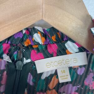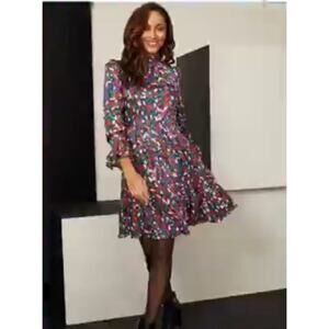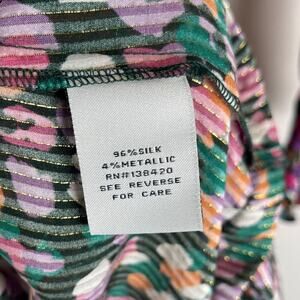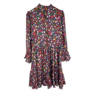 Etcetera Multicolor Brushstroke Pleated Metallic Long Sleeve Flowy Mini Dress 14