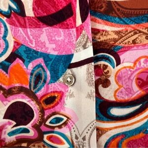 Etcetera Multicolor Paisley 100% Silk Button Long Sleeve Blouse