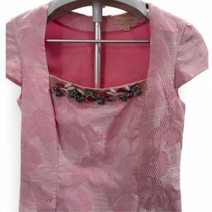 A showstopper piece, mini dress with cap sleeves. Features floral pattern and elegant neckline. Perfect for work related events or meetings. True to size. Lot 3